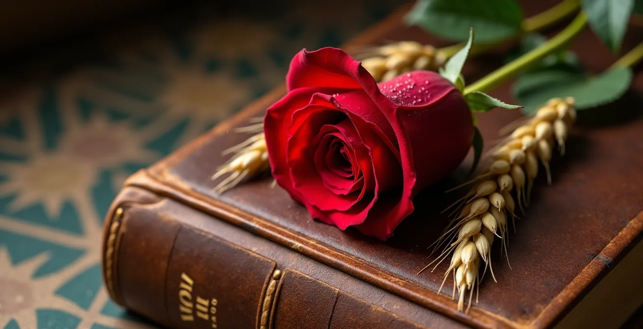 Muchos ven la espiga de trigo como un mero adorno, un detalle rústico que acompaña a la rosa. Pero detenerse ahí es perderse la mitad del mensaje. La rosa de Sant Jordi, en su concepción más pura, no es solo una flor; es un tríptico simbólico que narra una historia de amor, tierra y identidad. Los tres elementos son inseparables: la rosa roja, la espiga de trigo y la cinta con la Senyera.