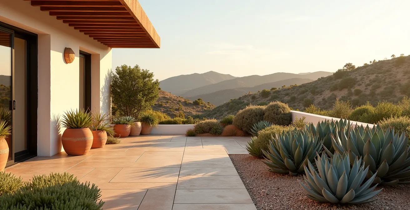 La clave no está en luchar contra la sequía con más agua, sino en adoptar una filosofía diferente. ¿Y si el verdadero secreto no fuera simplemente elegir la planta correcta, sino crear un ecosistema autosuficiente? Se trata de un cambio de mentalidad: pasar de ser un mero «regador» a un estratega que entrena a sus plantas, mejora la inteligencia del suelo y gestiona cada gota de agua con la máxima eficiencia. Este enfoque sistémico es la base de la xerojardinería moderna, una técnica que imita la resiliencia de la naturaleza.