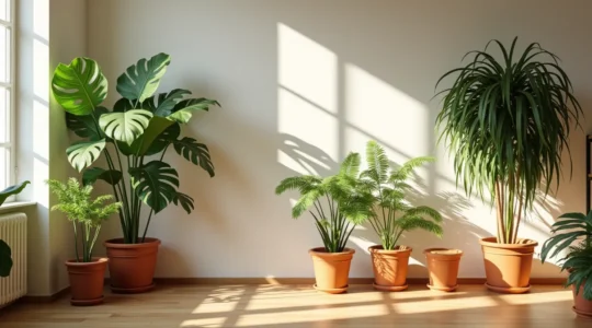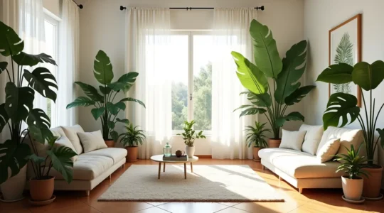 Las superficies vegetales absorben ondas sonoras y reducen la reverberación, especialmente efectivas en frecuencias medias (conversación humana). Una Monstera deliciosa bien desarrollada o un grupo de helechos de Boston pueden atenuar el eco en salones con suelos de gres y paredes lisas, comunes en construcciones mediterráneas. Este efecto es particularmente útil en pisos urbanos donde el ruido del tráfico o de vecinos resulta molesto. No eliminan el ruido, pero suavizan su propagación dentro del espacio.